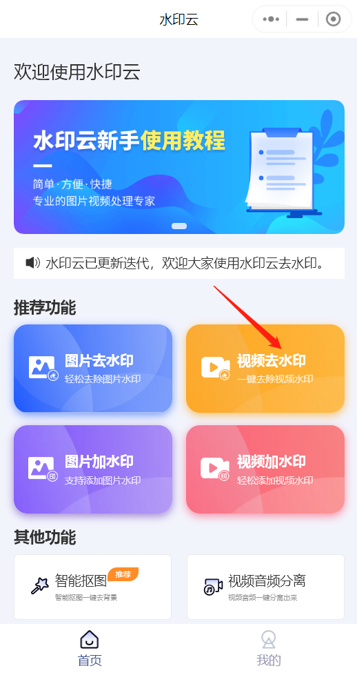 第二步打开微信小程序水印云,电脑上也可以打开官网或者下载软件,