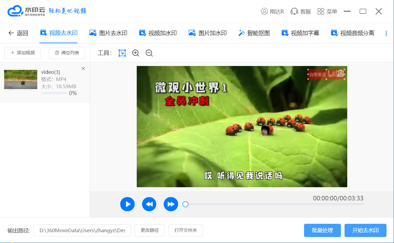 说到去除水印我第一个就想到这款软件了,它支持图片视频去水印,还有加水印、视频画面裁剪、视频时长截取等多种功能。我们可以创建多个水印选区,实时预览去水印效果,去除水印后不会影响原视频画面的质量哦。