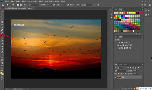 插入一张需要去除水印的图片,点击“仿制图章”工具,按“Alt”不断调整画面,直到水印去除。