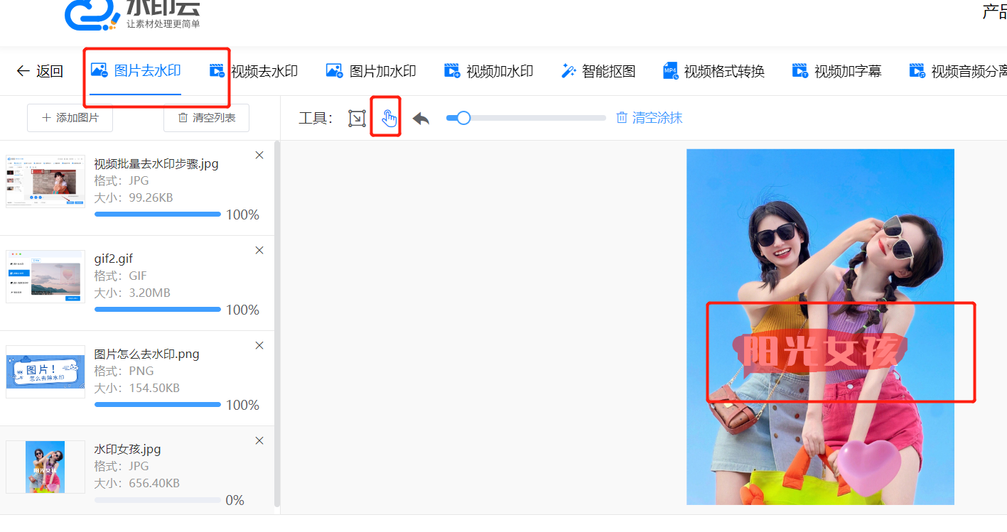 水印云图片去水印在线工具操作简单,一看就会,并且去水印效果好,几乎看不出水印的痕迹!