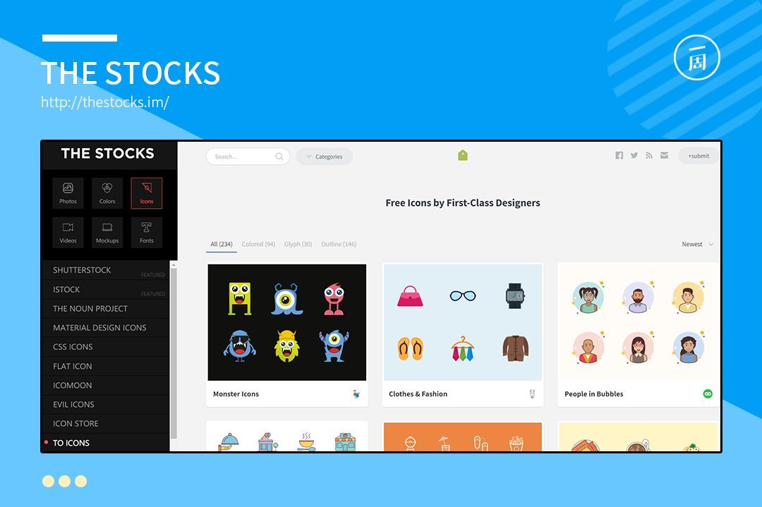 这个网站聚合了图片、颜色、图标、视频、样机和字体等设计素材,且每种资源提供了至少10个网站。有了这个聚合网站,下次寻找素材时,你就不需要打开多个网站了,因为所有寻找素材的工作,这回可以在一个网站上完成。