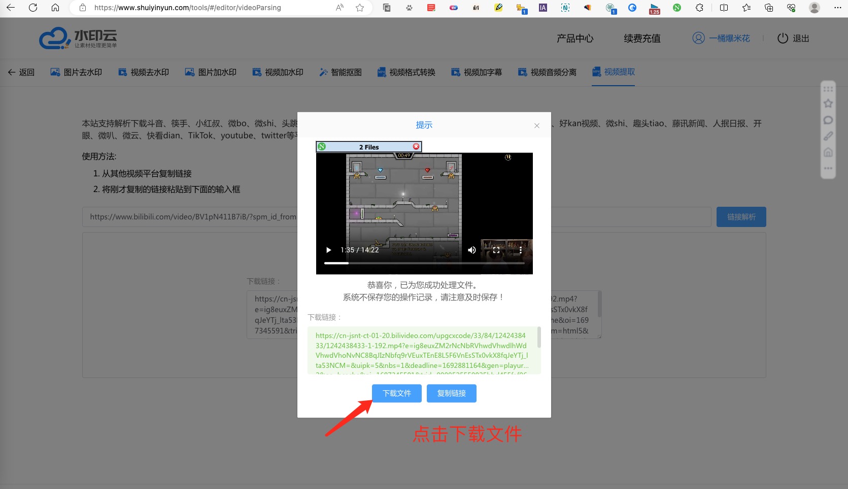 第三步,点击“开始去除”按钮,等待水印云处理你的视频。处理时间取决于视频的大小和质量,一般不超过几分钟。处理完成后,你可以下载或者分享去除水印后的视频。