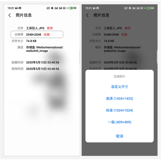 PS. 可以在手机「图库」的「照片信息」里查看分辨率,如果超出了限制,选择「压缩」就行~由于机型不同,优化方法随机应变啦(可百度)。