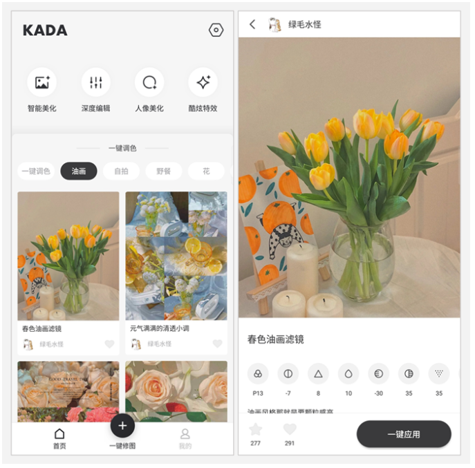 咔哒 APP 的 slogan 是一键拯救废片,主打的滤镜功能目前偏小红书风格,这潮流跟得紧巴巴~