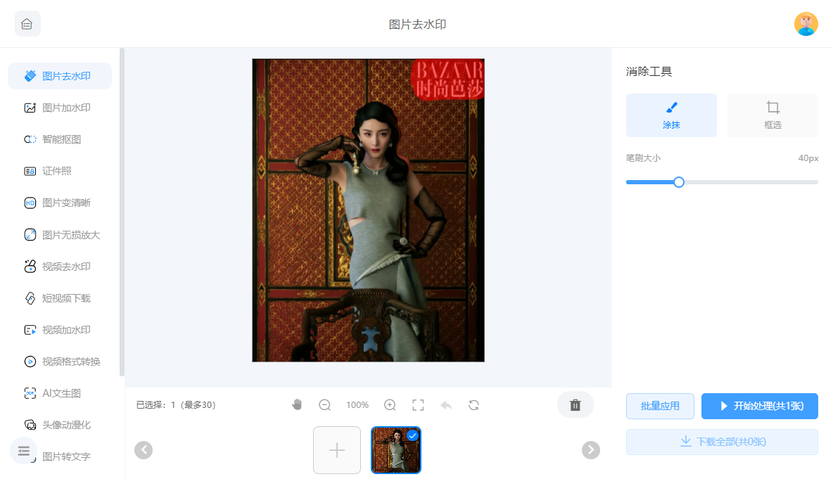 框选或涂抹需要去除的水印部分,开始处理后保存即可