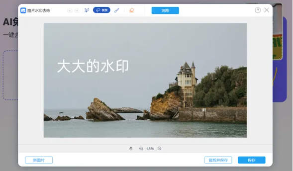 接下来,只需圈定要去除水印的范围,点击操作按钮,即可轻松去除水印。