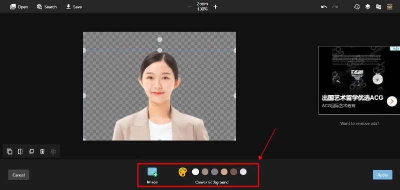 3、抠图完成后,通过右上角的【Background】选项,轻松更换背景颜色或图片,让照片焕然一新。