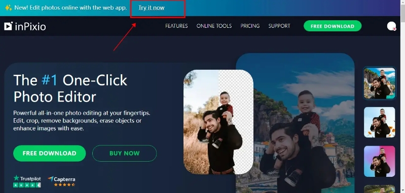 1、访问inPixio官网,点击首页的【Try it now】链接。