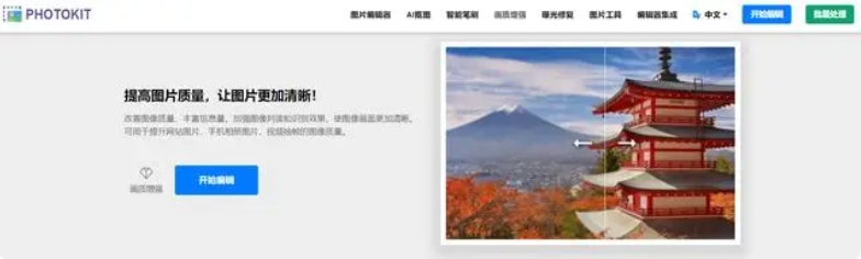 对于追求便捷的用户而言,PhotoKit是一个绝佳的选择。作为一款完全在线的图片处理工具,它无需下载安装,直接通过浏览器即可访问使用。其“画质增强”功能专为模糊照片定制,几步之内即可见证照片品质的显著提升。