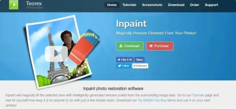 Inpaint以其智能算法著称,能自动识别并填充水印区域,实现无痕去除。