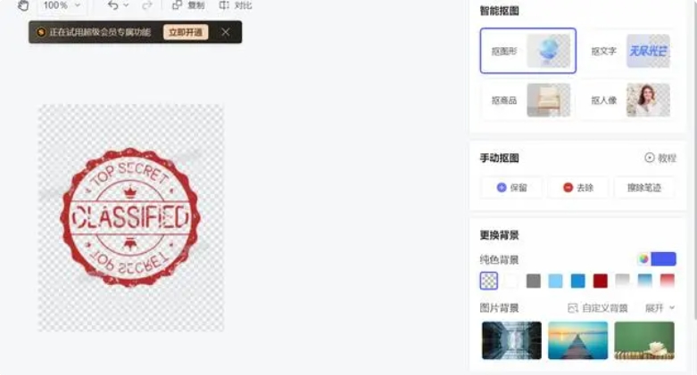 Clipping Magic作为一款在线抠图工具,无需下载任何软件,只需打开浏览器即可开始使用。它凭借智能算法和直观的操作界面,让印章抠图变得简单快捷。同时,丰富的背景编辑功能也为用户提供了更多创意空间。