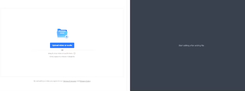 1、访问KwiCut在线网站,并进入Audio to Text模块,点击“Upload video or audio”按钮,上传要转换的音频文件。