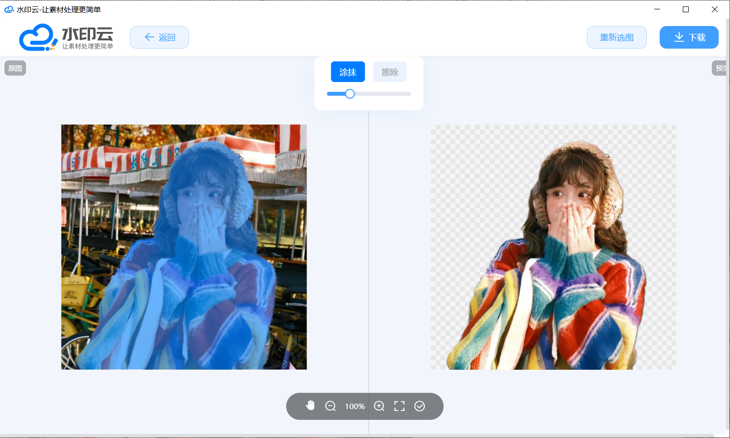 2、软件将自动识别并移除图片背景,发丝儿都给你抠的明明白白。