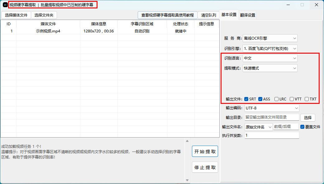4、设置完成后,点击 “开始任务” 按钮,VideoSRT Pro 会开始对视频中的语音进行识别,并将识别结果以文字形式呈现出来。识别完成后,你可以查看和编辑生成的文字内容。