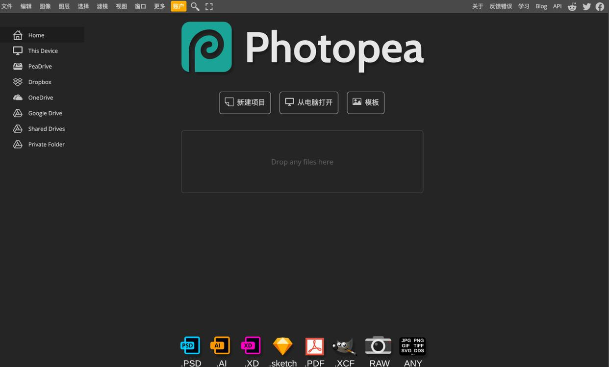 Photopea堪称超强大的在线 PS,由捷克开发者 Ivan Kutskir 打造。它在浏览器中实现了 PS 最常用的核心功能,响应速度快,操作界面与 Photoshop 相似,无需下载安装。无论是简单图片处理、基础修图,还是高级滤镜、脚本操作,Photopea 都能轻松应对。